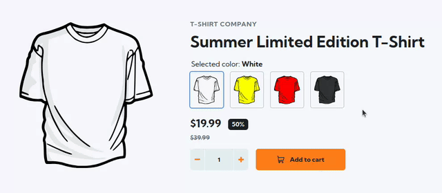 Now, let’s focus on the core of this article: building a tile-based selector for T-shirt variants. Keyboard navigation is essential, extending beyond typical mouse-click selection. The example above clearly demonstrates this point, as the cursor, placed next to the list of variants, indicates that mouse input is not used for variant selection. Achieving this requires appropriate HTML markup.